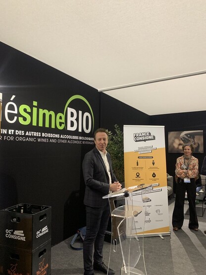 Au salon @MillesimeBio@twitter.com, lancement presse du réseau #FranceConsigne avec @OcConsigne@twitter.com et fierté d’accueillir une entreprise d’#insertion sur notre territoire.
