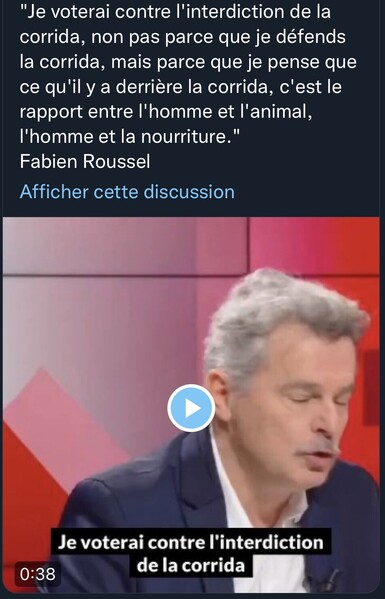 Non mais quelles conneries débitées par la torero Marie Sara sur France Info ! Dangers pour le torero, respect et amour de l'animal, beauté du spectacle,... Toutes les idioties des soutiens. Sans compter le chantage à l'emploi. Même la proposition (Acceptable) de ne plus tuer le taureau est refusée ! Des alternatives existent :