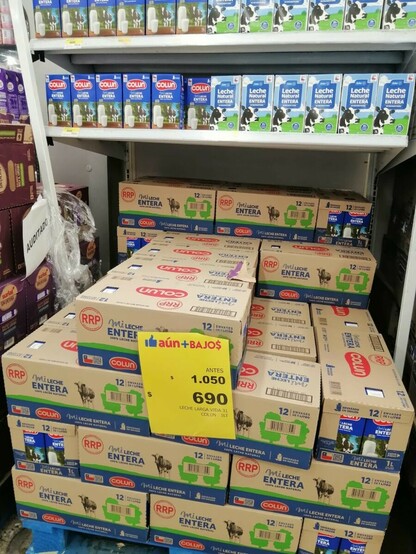 #Coronel en el Líder de Coronel está la leche Colun de litro a $690 con todo medio de pago. No sabemos si estará en otros.