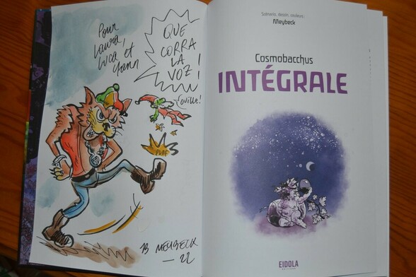 Amis twittos pour noël offrez vous l'intégrale de Cosmobacchus de @meybeck_bd@twitter.com que je suis en train de dévorer. La dédicace est juste superbe, j'espère que mes ex collègues aimeront !