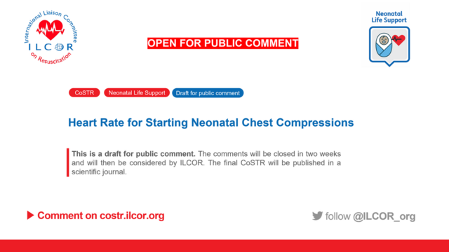 We have a new #CoSTR #NLS Scoping Review on Heart Rate for Starting Neonatal Chest Compressions for public comment! Read CoSTR πhttps://bit.ly/3HfM2G6 and leave your comment!