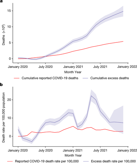 Scientits estimate 14.83 million excess deaths globally, 2.74 times more deaths than the 5.42 million reported as due to #COVID19 for the period.