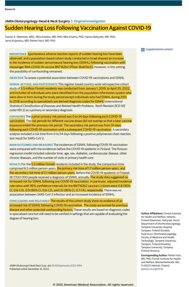 ๐NO increased hearing loss 8 weeks after 1, 2, or 3 doses of Pfizer Vaxx