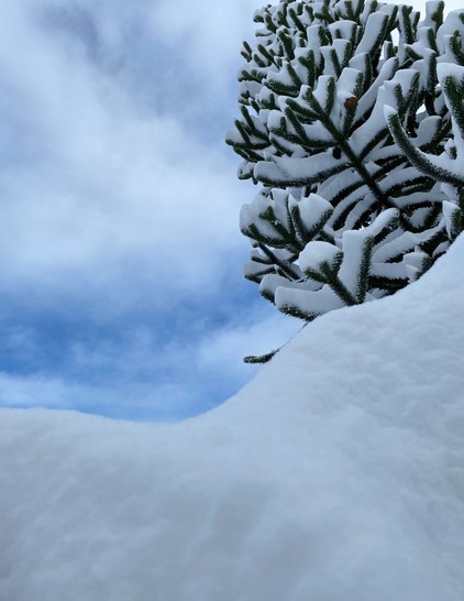 Self-consciously arty snow day photo. I do love a monkey puzzle tree.