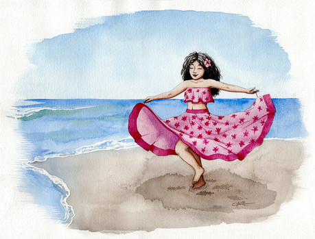 J'ai décidé d'illustrer ça avec une aquarelle rapide d'une petite danseuse de Séga. Leurs amples jupes qui virevoltent sont fascinantes. 🙂