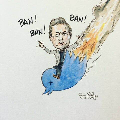 Are you not entertained? Will Twitter just be another Truth Social once the banning stops? Sometimes it takes a billionaire to run a company into the ground. #politicalcartoon #twitter #elonmusk #banned #crashandburn