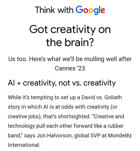 👉 AI generativa e tocco umano. L'AI non ucciderà la creatività, ma ci sarà bisogno di pensare diversamente.