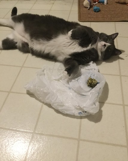 #CatsOfMastodon #Caturday #Cats #dexter #happybirthday #birthdaytreats #wandtoys #crinkleballs