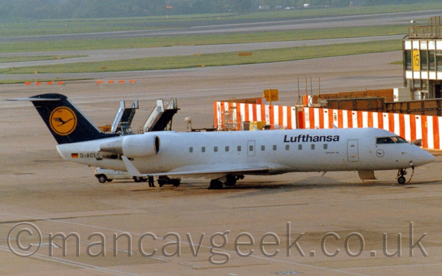 D-ACLC, Canadair CRJ200, Lufthansa, seen parked on Gate 14 at Manchester Airport, some time after January 1993.