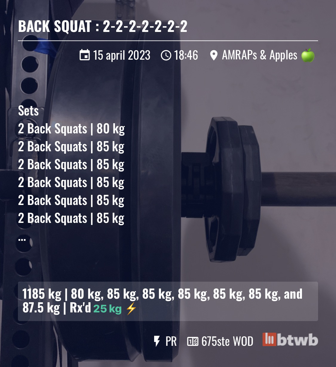Weights are the max of what I can do with reasonable form, next goal is to do them all 87,5 when this 7x2 pops up again!