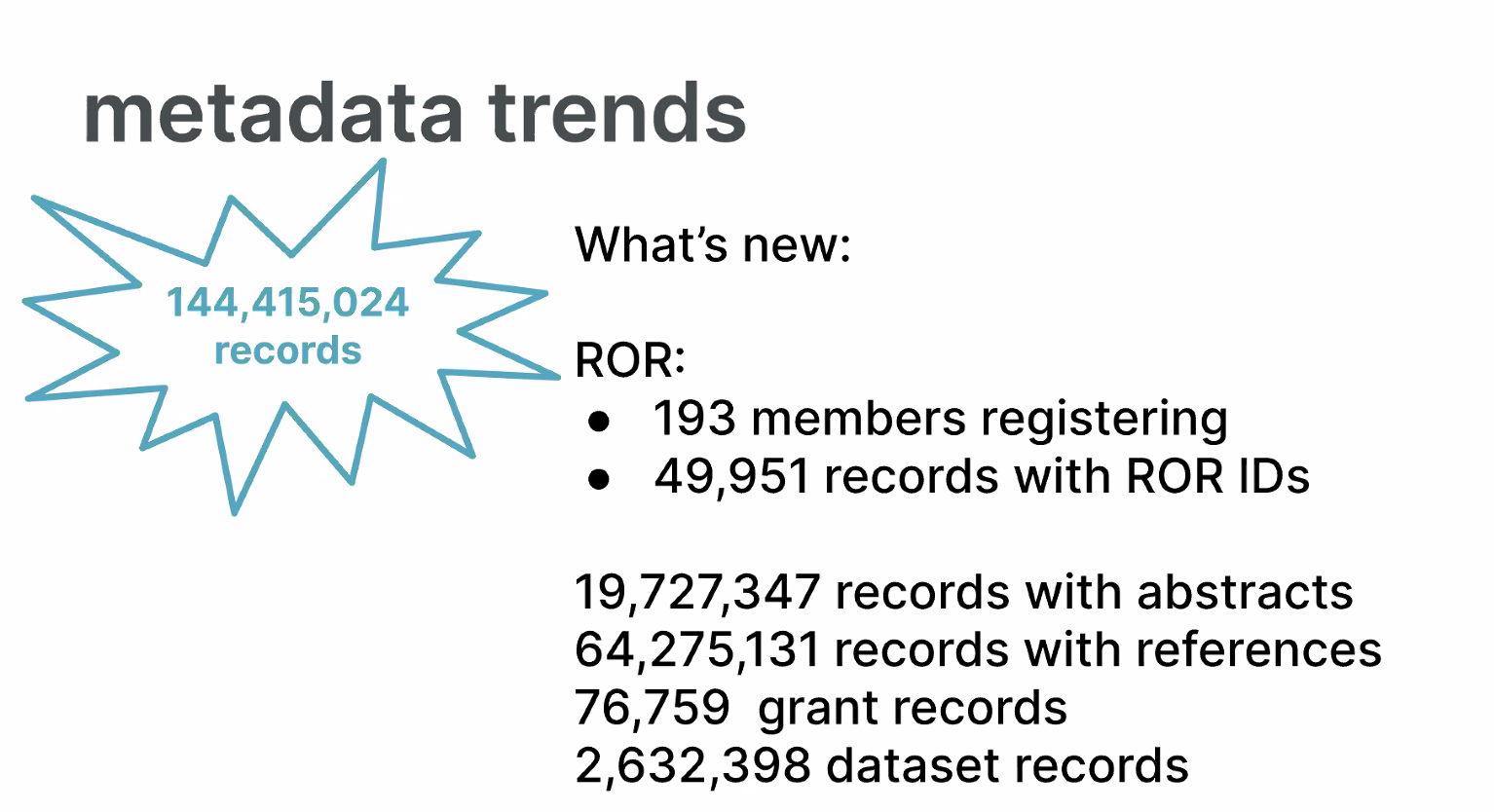 Crossref metadata trends #crossrefupdate23 #crossref ROR and astracts growing fast (but still a long way to go!)