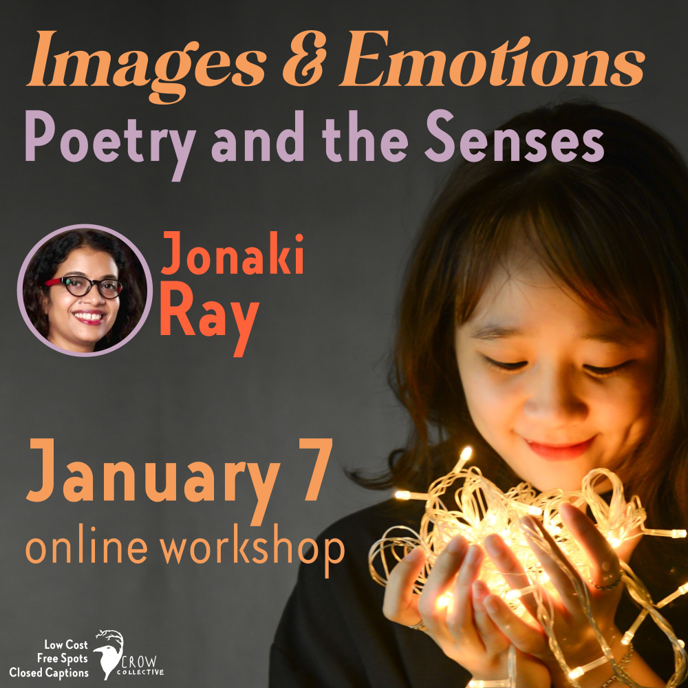 Only 1 spot left in this workshop - What is the difference between a simile, a metaphor, and a symbol? When and how can you use these to express your emotions in poetry? Join Jonaki Ray for Images and Emotions: Poetry and the Senses: https://crowcollectiveworkshops.com/2021/12/06/poetry-3/