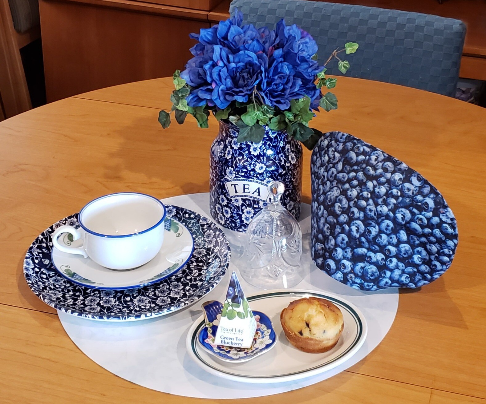 #Tea #Teableau #TeaCozy #TeaCosy #Blueberries #Muffins #GreenTea #CrystalBell #Dansk