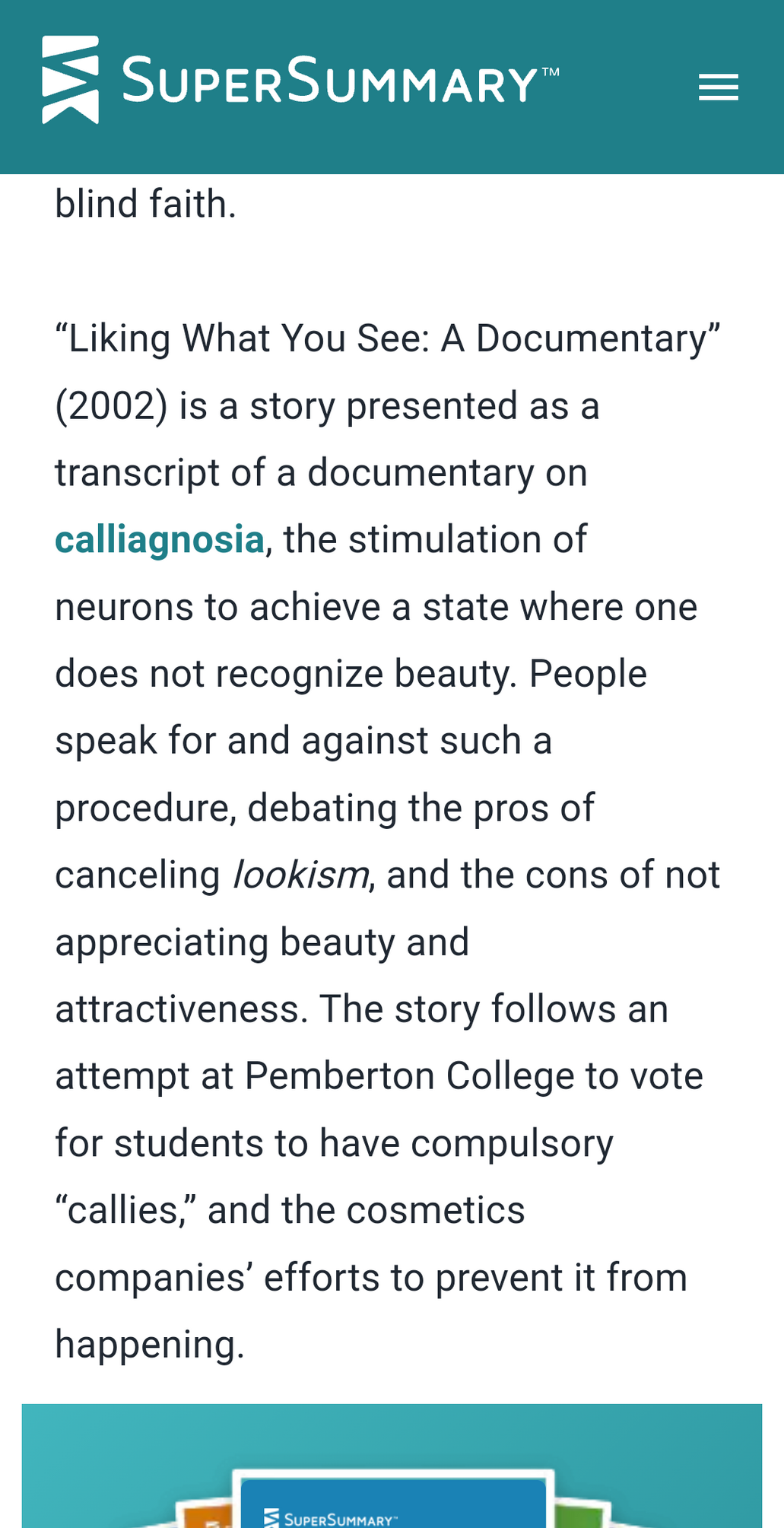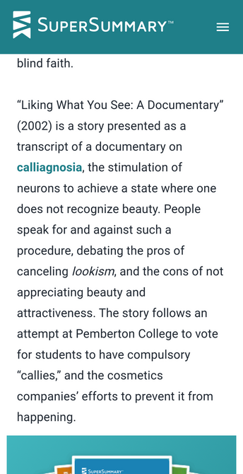 @pluralistic You're a #SciFi writer. Did YOU realize how prophetic the short story "Liking What You See" in #TedChiang 's "Stories Of Your Life And Others" was? It will not be long now before we develop this procedure just to protect ourselves from scammers using AI generated spokespeople to manipulate us into #cryto scams and whatever else. https://www.printfriendly.com/p/g/BEknJk