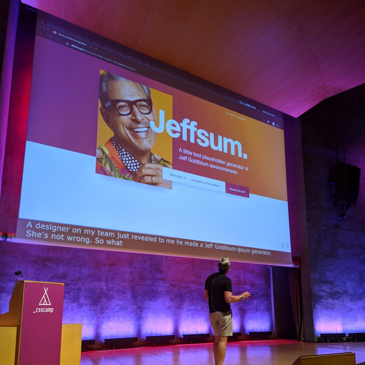 I don't know if you're aware Mr @jeffreygoldbIum@twitter.com, but you're an inspiration to us all, here #CSSCamp. Thanks for the interesting talk @oliverturner@twitter.com! @csscamp@twitter.com #WorkingAtScout24