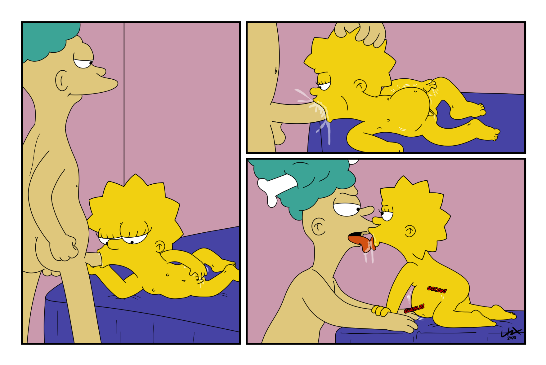 #the_simpsons #lisa_simpson #homer_simpson #lisa #homer #simpson #loli #girl #naked #barefoot #flat_chest #pantyless #dick #fellatio #blowjob #incest #burp #cum #cum_belly #nsfw #cartoon #comic
