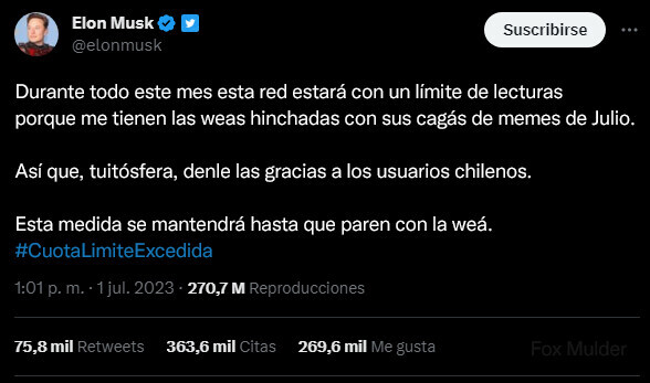 Información que me llegó de primera fuente respecto a #CuotaLimiteExcedida y en la que estoy en completo acuerdo con don Elon.