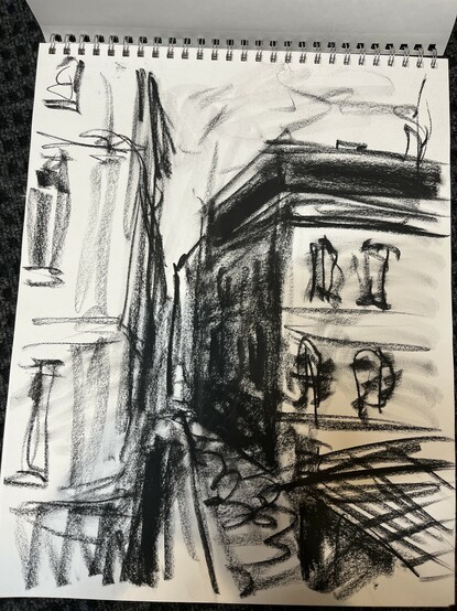I love the vibe here . This is my 2 min charcoal sketch from #CuratorPrompts110 - so fun