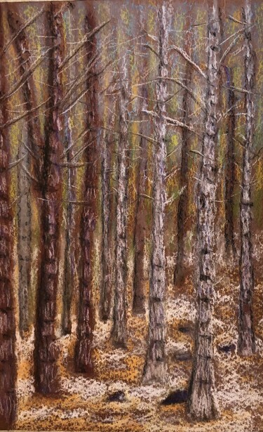 Little pastel pencil drawing of a pine tree forest. I added a bit of colour to make it more readable. Also, the pastel pencils definitely needed a bit of fresh air, they are starting to smell funny. :artpeek: