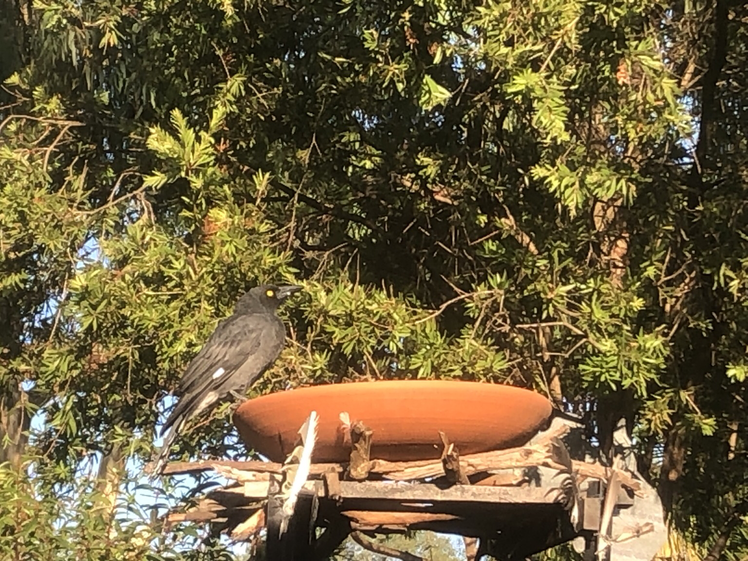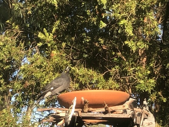 The youngster #Currawong is back. Relaxing in the sun, taking a drink. Taking in the morning silence.