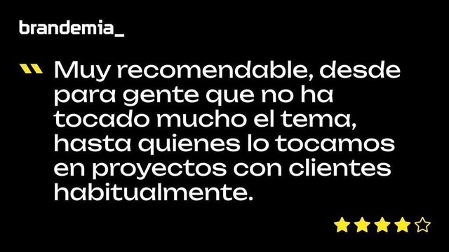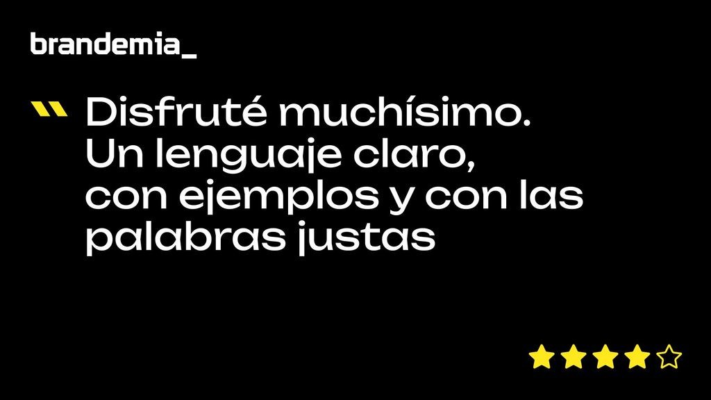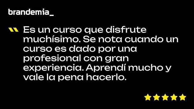 "Imprescindible" 🌟 "Crucial para cualquier profesional que esté en esto del branding" "Sin duda, aprendí mucho y vale la pena hacerlo" "Disfruté muchísimo. Un lenguaje claro, con ejemplos y con las palabras justas" 👌
