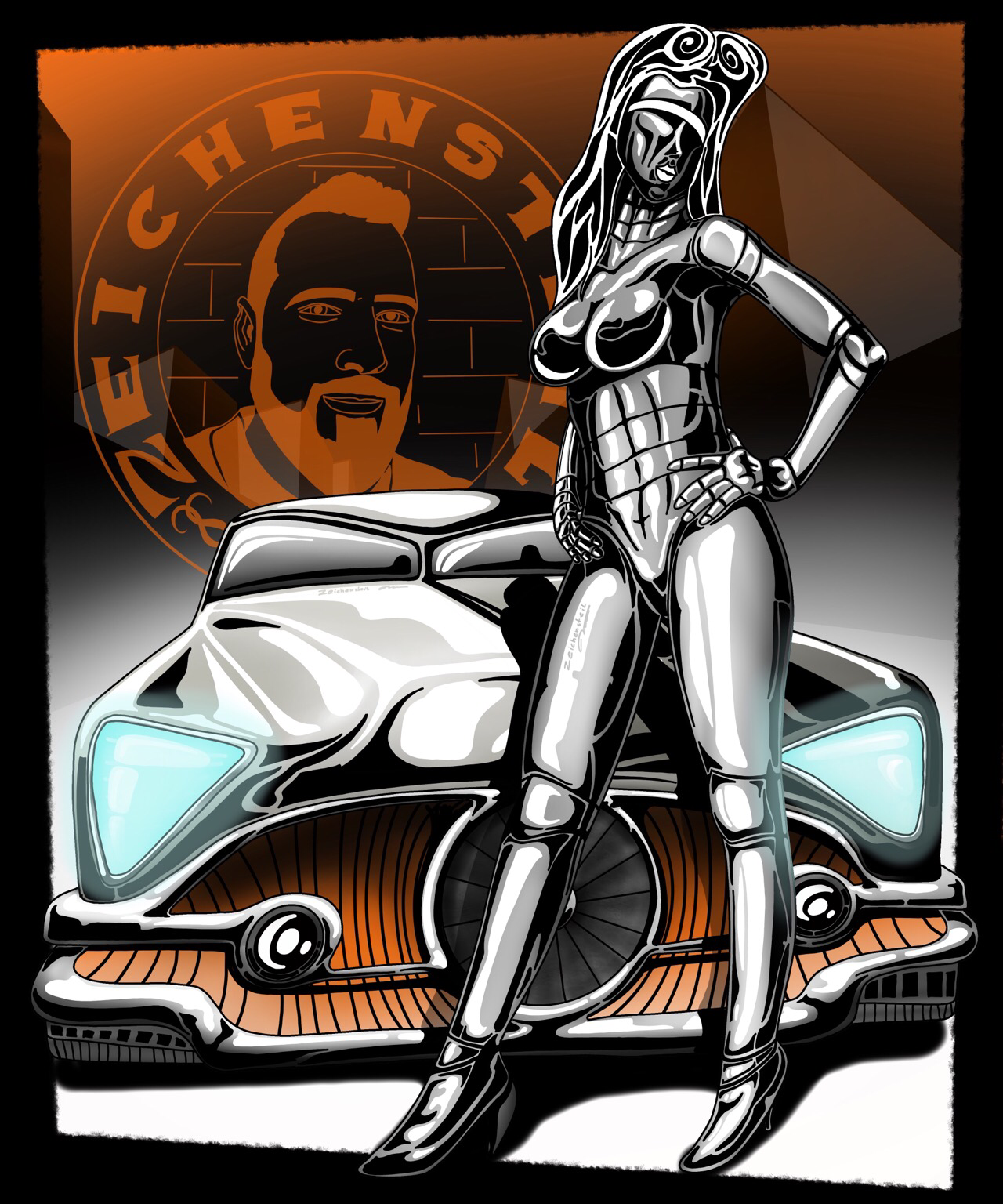 #mastoart #cyberpinup #art #picture #robot #hotrod #cyberrod #future #sexy