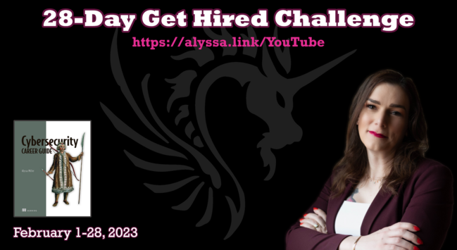 Are you trying to get #FediHired in #Infosec? Looking to pivot jobs? I'm excited to announce this even that I'll be hosting throughout the month of February. The 28-Day Get Hired Challenge!! Each day I'll pick one topic from #CybersecurityCareerGuide and I'll talk through it and drop it in a video on my YouTube channel. I hope you'll find it helpful or at least fun and interesting. Stay tuned.