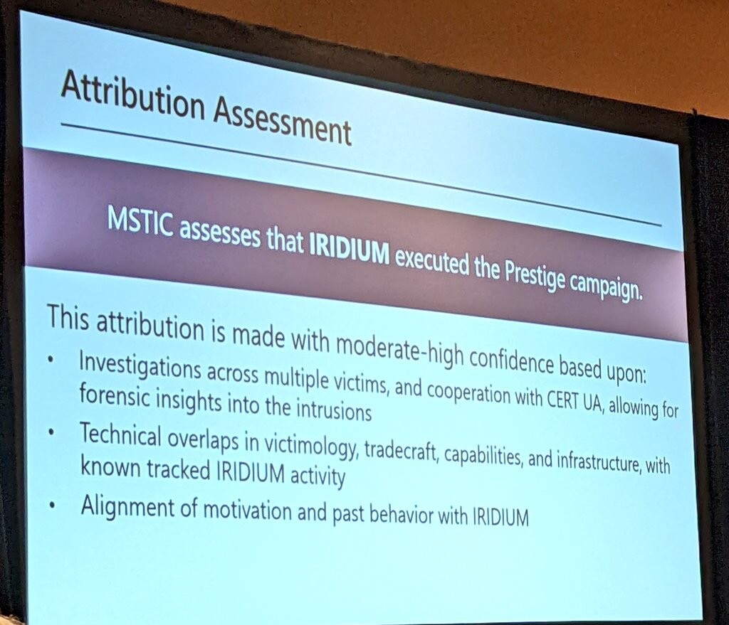 L’équipe MSTIC de #microsoft a attribué l’utilisation du ransomware Prestige au groupe Iridium (APT russe) en Ukraine et Pologne. Microsoft travaille ouvertement avec le CERT Ukraine #cyberwarcon https://www.microsoft.com/en-us/security/blog/2022/10/14/new-prestige-ransomware-impacts-organizations-in-ukraine-and-poland/
