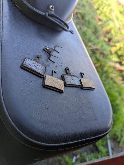 #BikeToot Puncture repair gave me the opportunity to swap the front pads on my #RadRunner #ebike. Old pads had about 4000km of wear on them, replacement pads are Nukeproof semimetallic. #cycleIreland