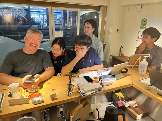 Owner asked me a few questions about what I was doing etc and suddenly the entire place, which was full of high school kids studying for their cram school, was surrounding me and asking me questions and practicing their English and such.