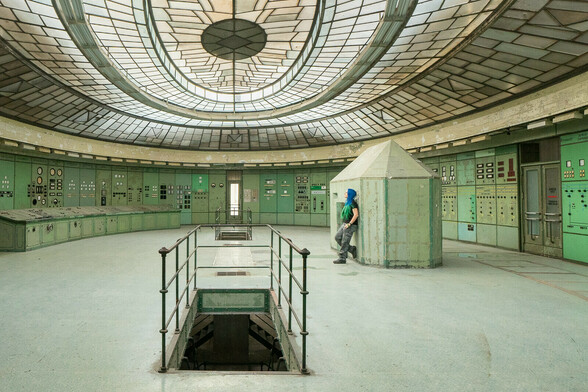 I present: #Abandoned powerstation control room, in beautiful otherworldly green with Cyclopean skylight🖤