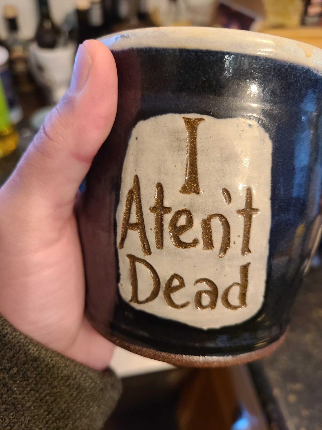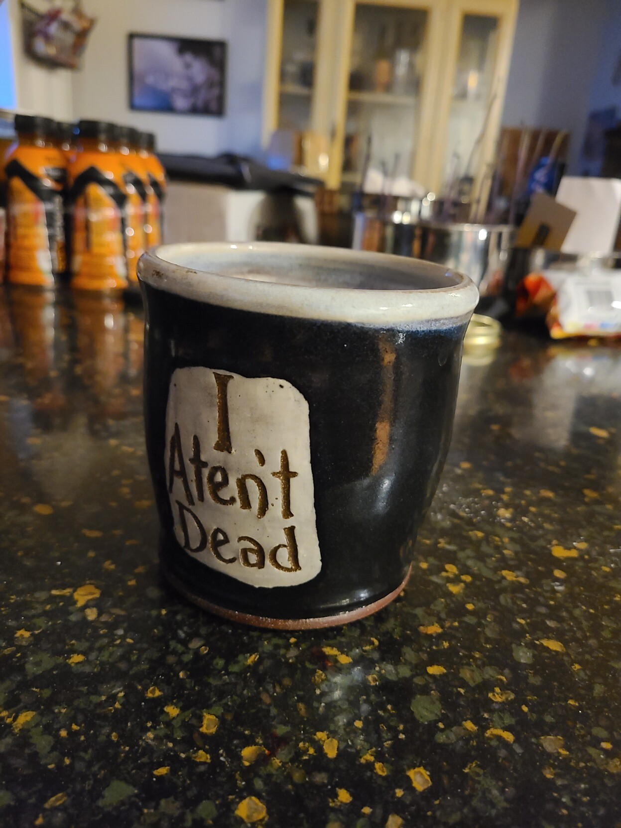 for todays #DailyCup i have a fire in the hearth, built from a coal of the fire last night, its the coldest its been in 32 years, it is my 42 birthday, and... i got married yesterday