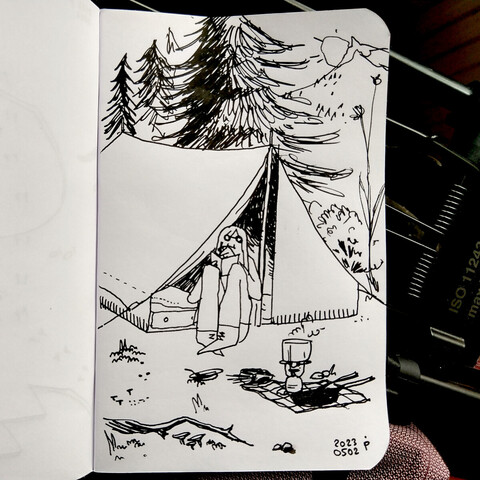 so I intended to draw artists in tent, but I accidentally drew artist outside tent.