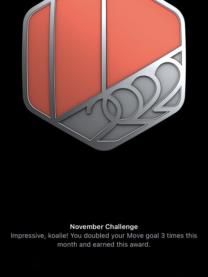 The November #fitness challenge from the #AppleWatch was to double my move goal 3 times during the month. So I earned it on the 6th 😜