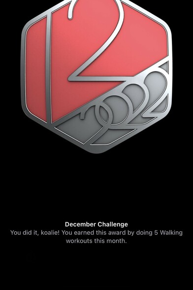 The December #fitness challenge from the #AppleWatch was to walk 5 times this month. So I earned it on the 9th 😜 It was one of the easiest challenges since I started exercising in March 2020. I don’t mind at all slacking a bit on the challenge front! Taking it easy in December 👌
