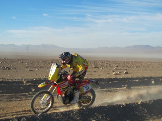 Miguel Puertas pilotando en los alrededores de Copiapó en el Dakar 2011