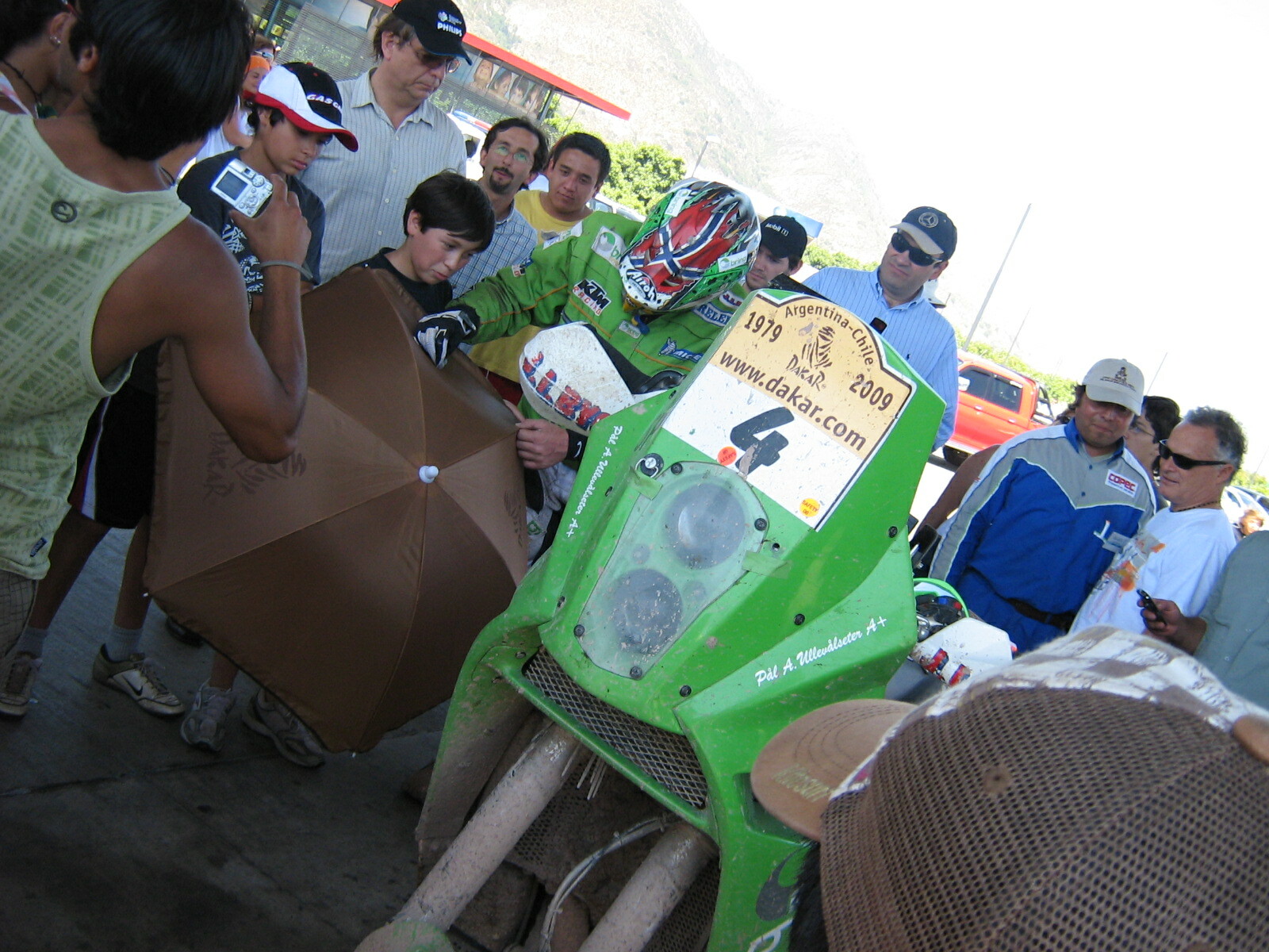 Pal Anders Ullevalseter firma autógrafos a un entusiasta público chileno en el Dakar 2009