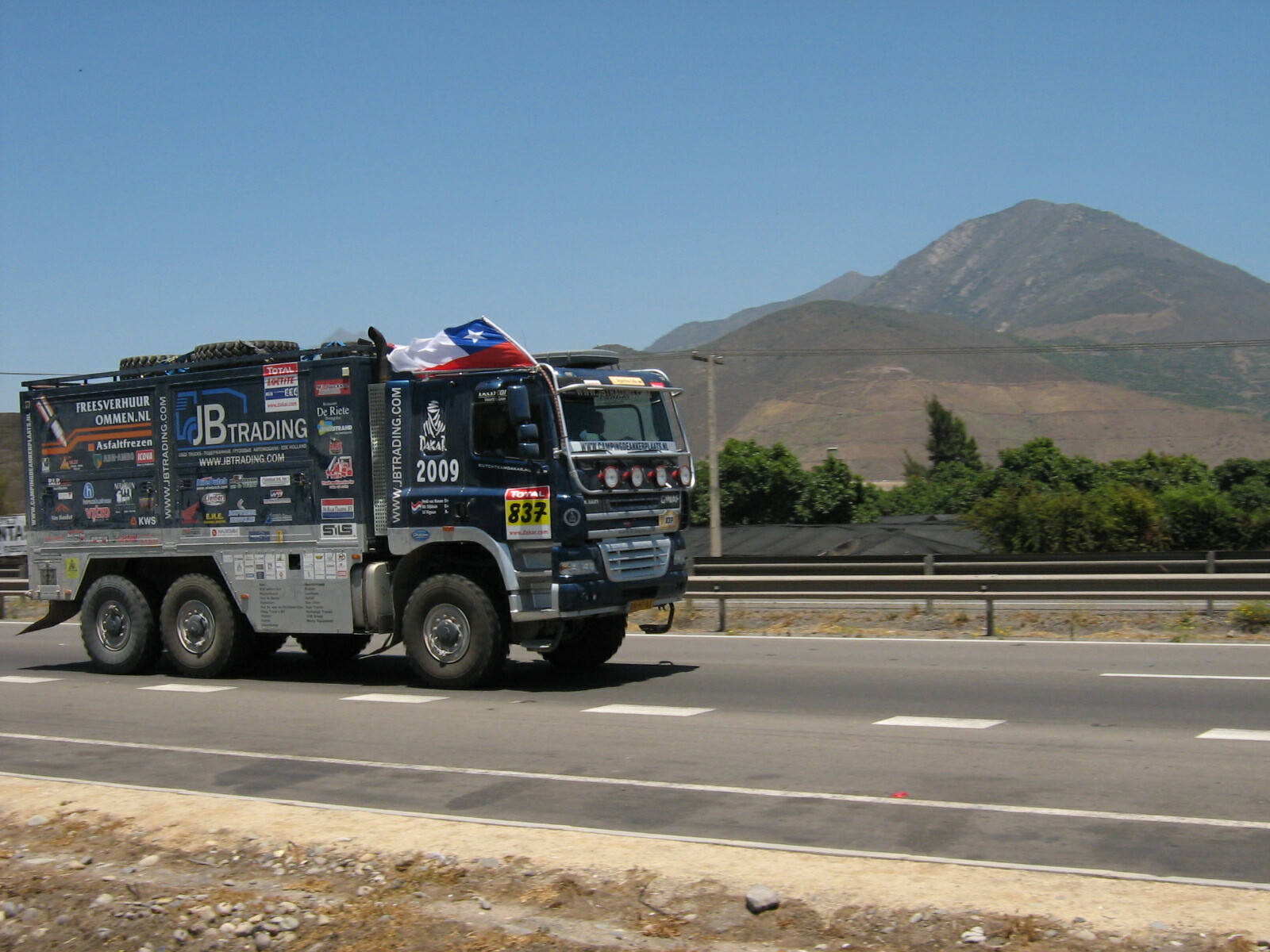 El primer día del Dakar en Chile en 2009 se saluda con bandera chilena desde las tripulaciones.