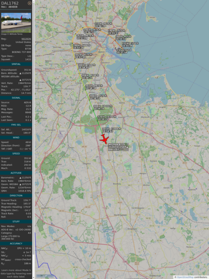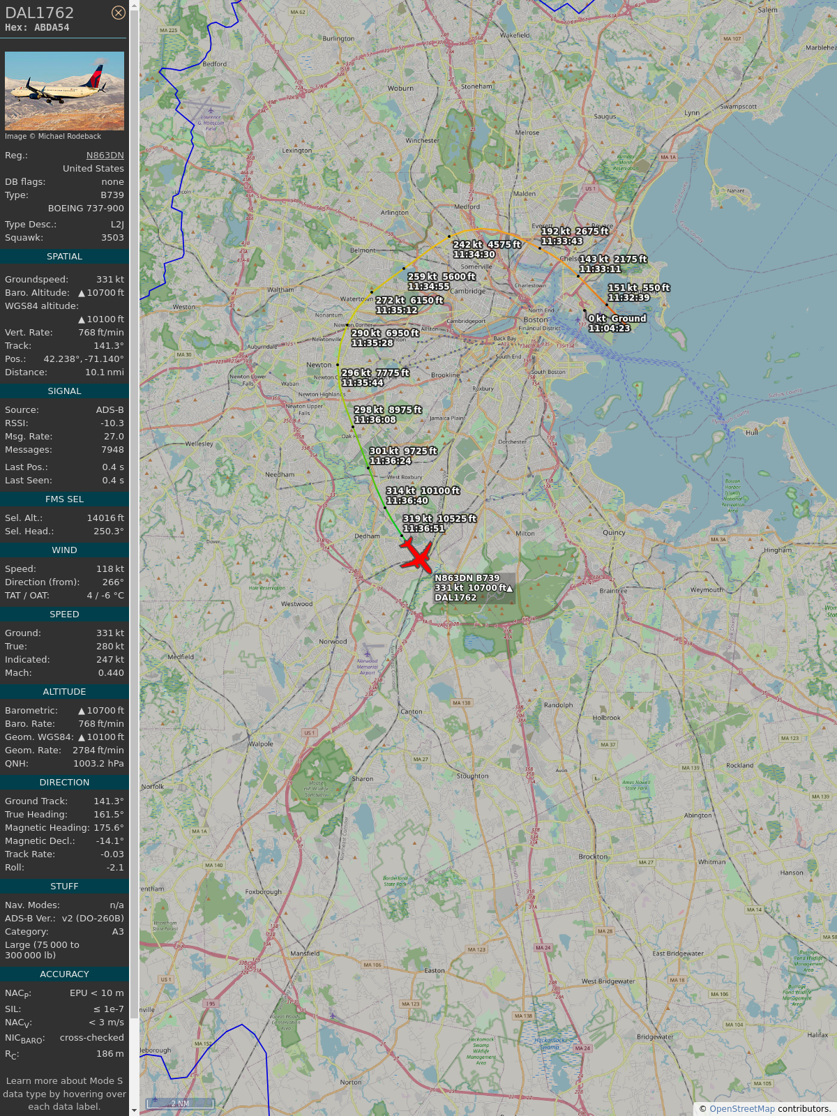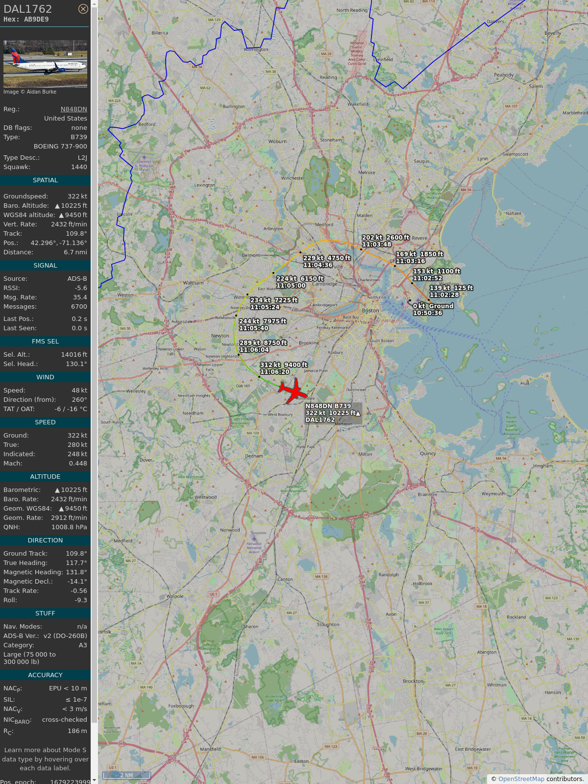#ab4eeb #dal1762 #deltaairlines #bos #aua #planefence #adsb