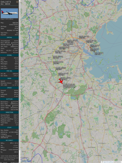 #abe930 #dal1973 #deltaairlines #bos #puj #planefence #adsb