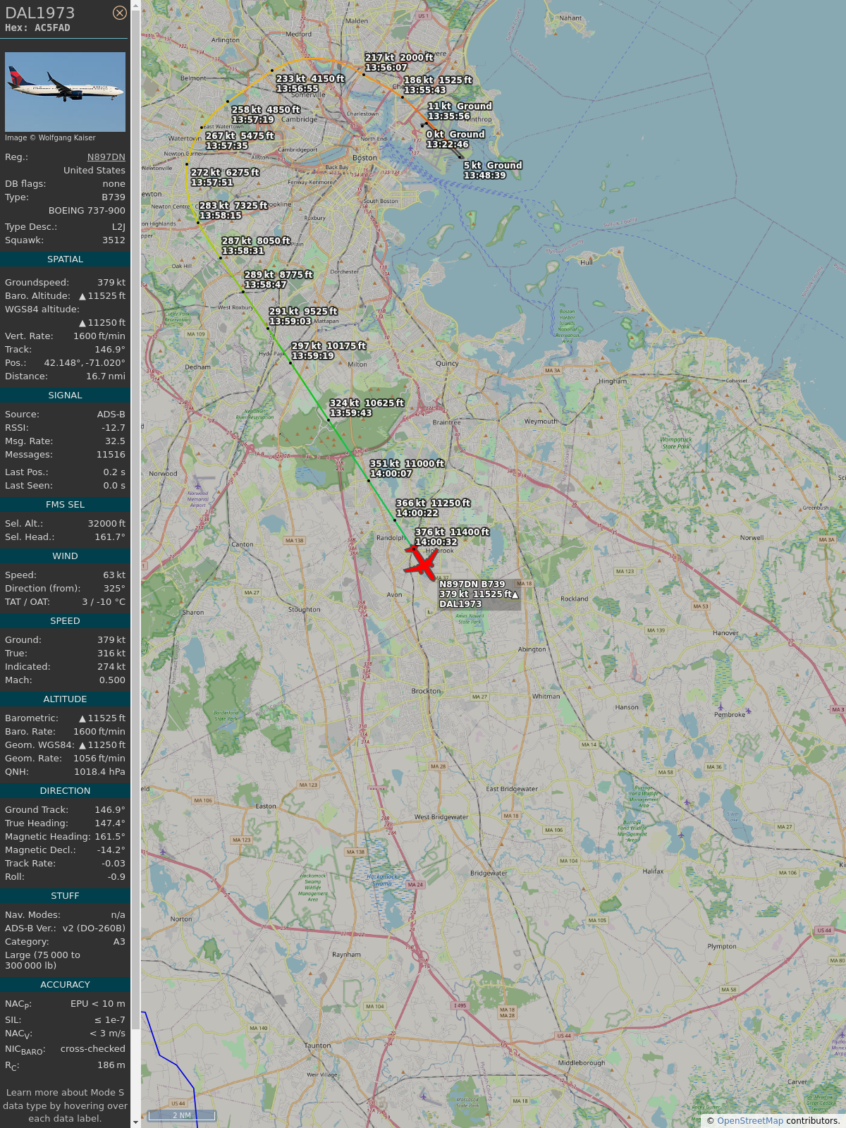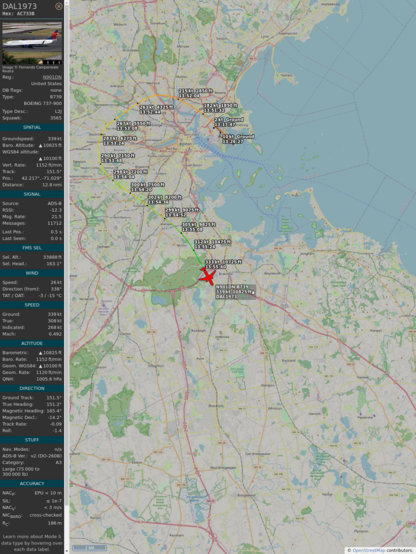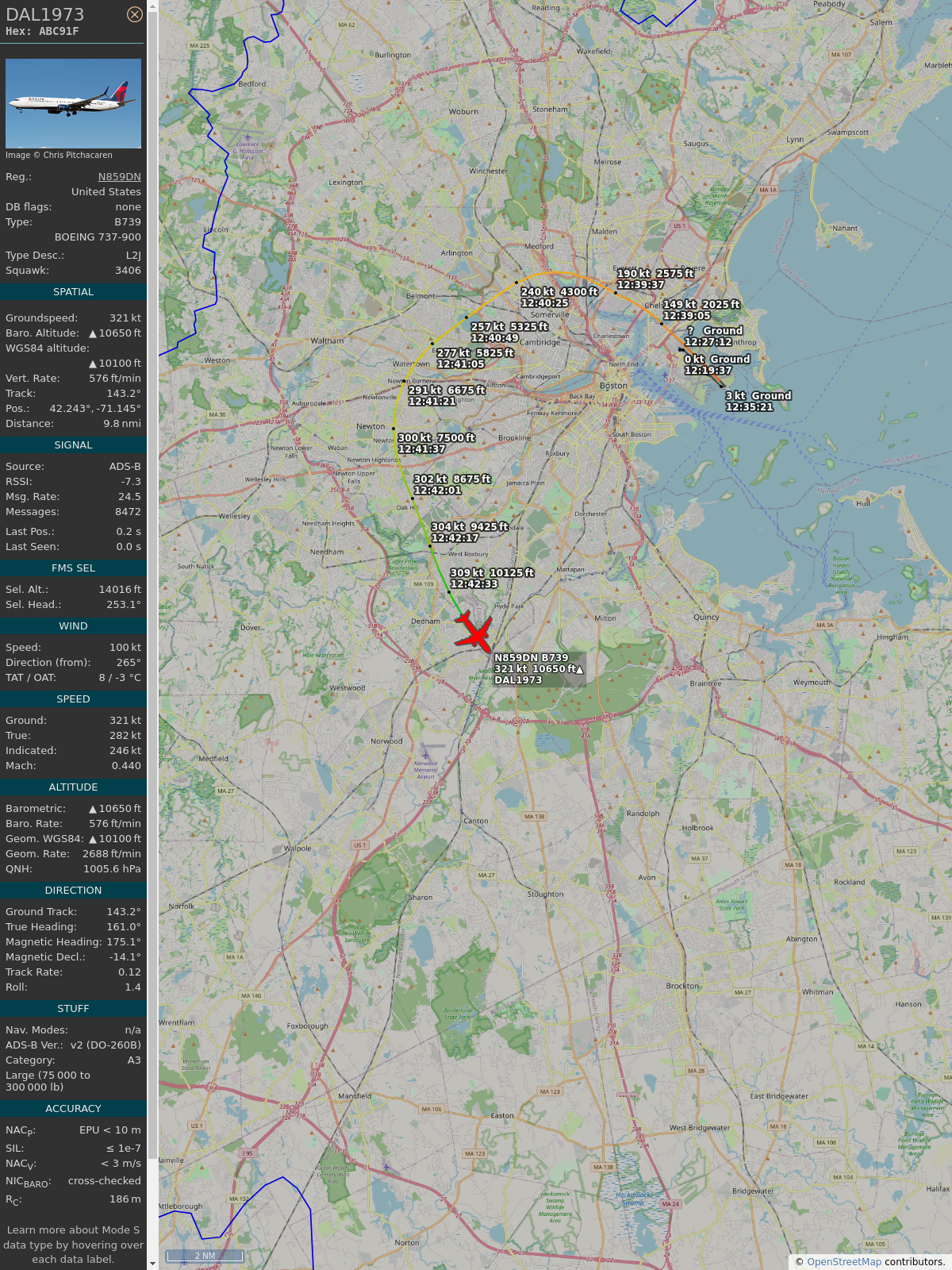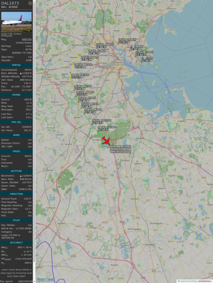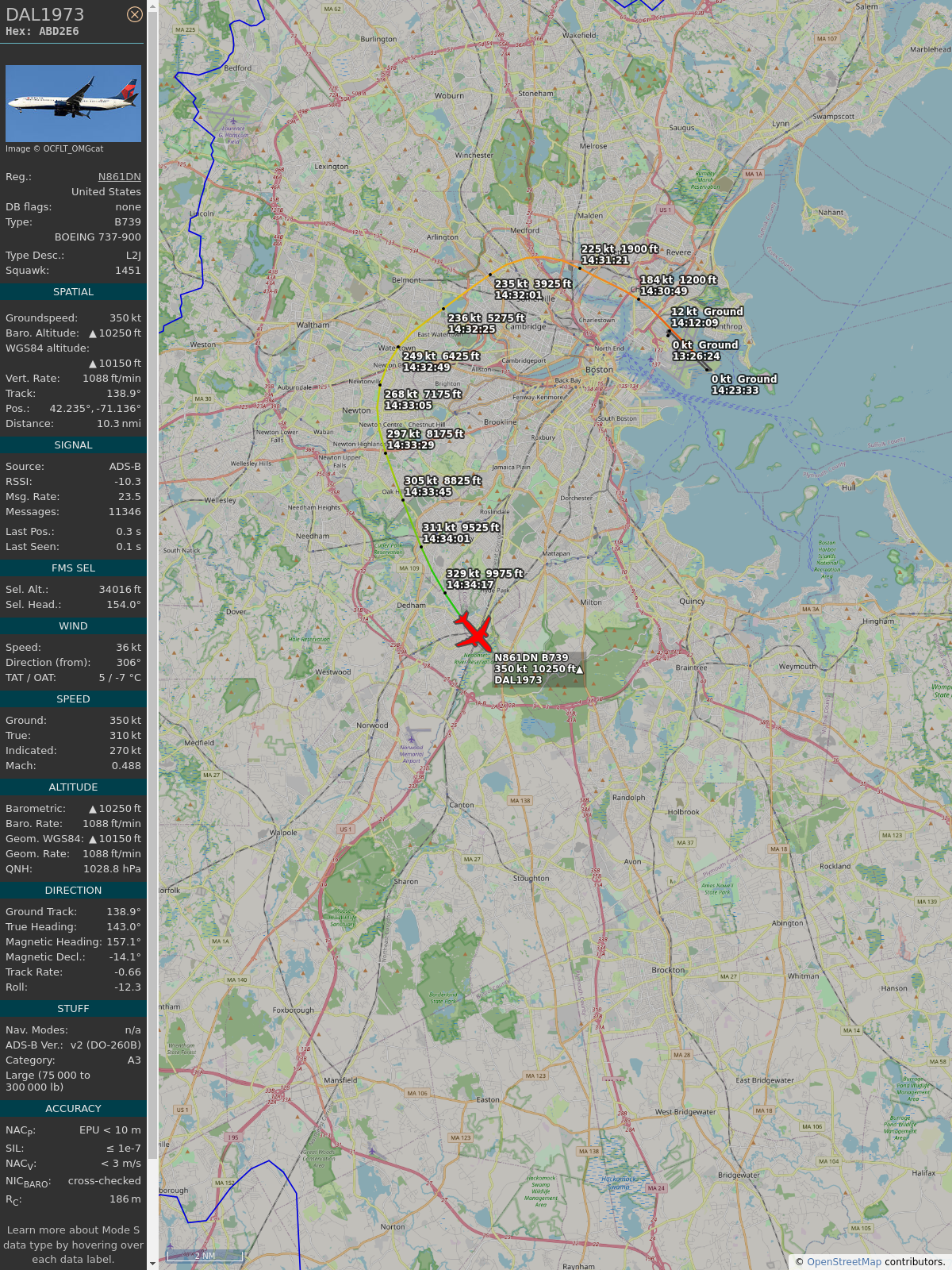 #ab1122 #dal1973 #deltaairlines #bos #puj #planefence #adsb