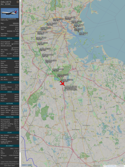 #ac01d3 #dal1973 #deltaairlines #bos #puj #planefence #adsb