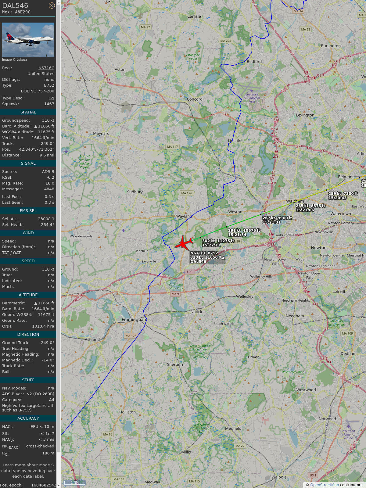 #a8e29c #dal546 #deltaairlines #sfo #jfk #planefence #adsb
