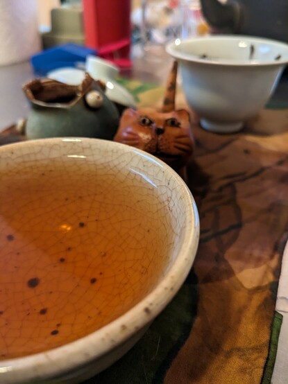 Dancong Oolong was one of the first Chinese teas I tried. It has a reputation for being finicky to brew, however for the first few years, I brewed it in a fairly ordinary thin porcelain gaiwan and never really had any problems. Then I tried to improve my Dancong teaware, experimenting with clay, ruyao porcelain, and other teapots. I was never as happy with the tea. Going back to the same old gaiwan today feels like going home, and the tea is more enjoyable.