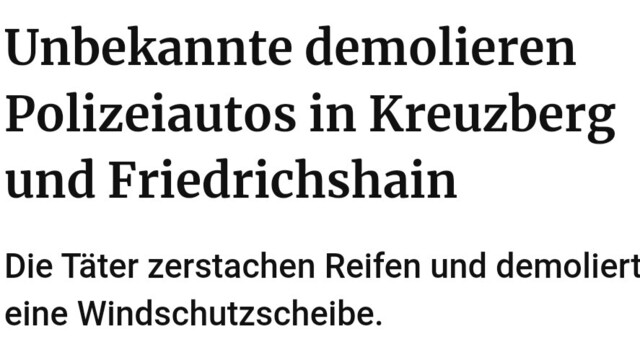 In Berlin sind an drei verschiedenen Orten Polizeiautos demoliert worden
