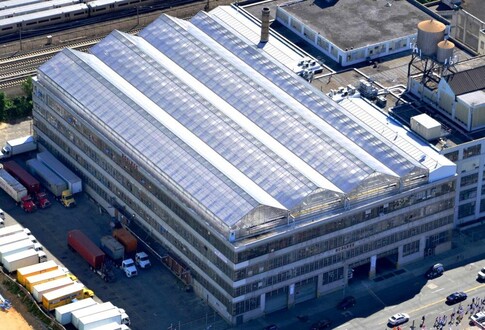 Gotham Greens is a producer of organic food in the US working with huge greenhouses. The greenhouses in the New York City Area are built on top of factories and a mall to use the spare place.