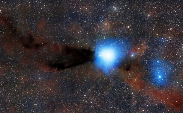 The massive, star-forming #InterstellarCloud Lupus 3 is captured with the 570-megapixel US Department of Energy-fabricated #DarkEnergyCamera at NSF’s NOIRLab’s Cerro Tololo Inter-American Observatory in Chile: https://noirlab.edu/public/news/noirlab2313/ - the dazzling central region of this sprawling cloud reveals a pair of infant #stars bursting from their natal cocoons of dust and gas to illuminate the reflection nebula known as Bernes 149.