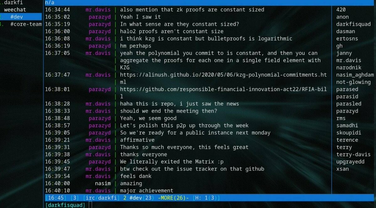 Meanwhile, #DarkFi devs are the first to deliver a decentralized, anonymous chat.