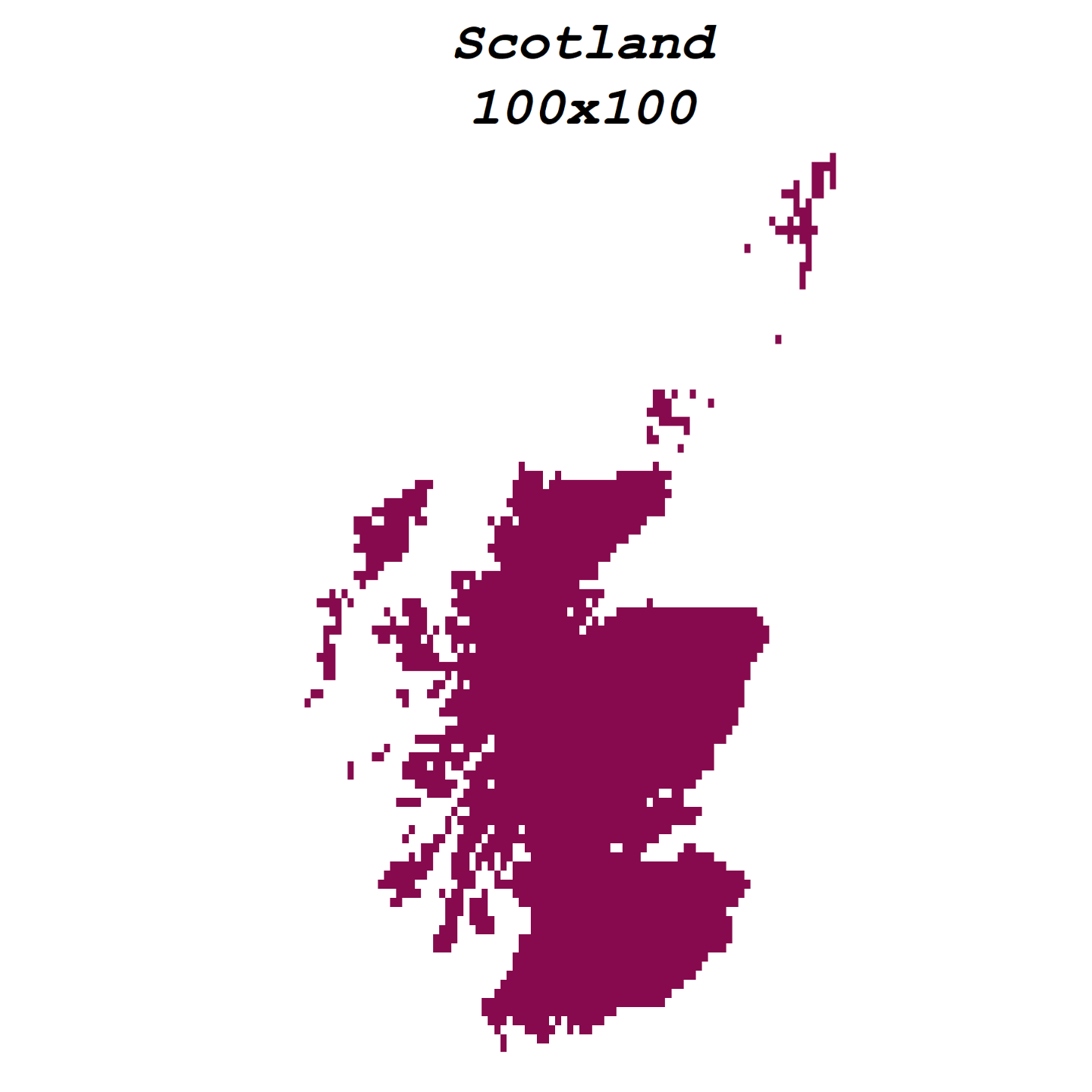 The "raster" prompt on #Day7 of the #30DayMapChallenge gave me a chance to look at maps under different grid resolutions using the {stars} #rstats package! 🏴🏴🏴