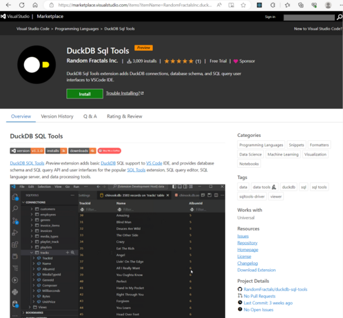 π₯ https://marketplace.visualstudio.com/items?itemName=RandomFractalsInc.duckdb-sql-tools